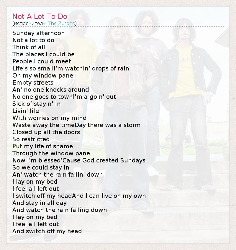 А как ты думаешь, о чем песня "Not A Lot To Do" ?