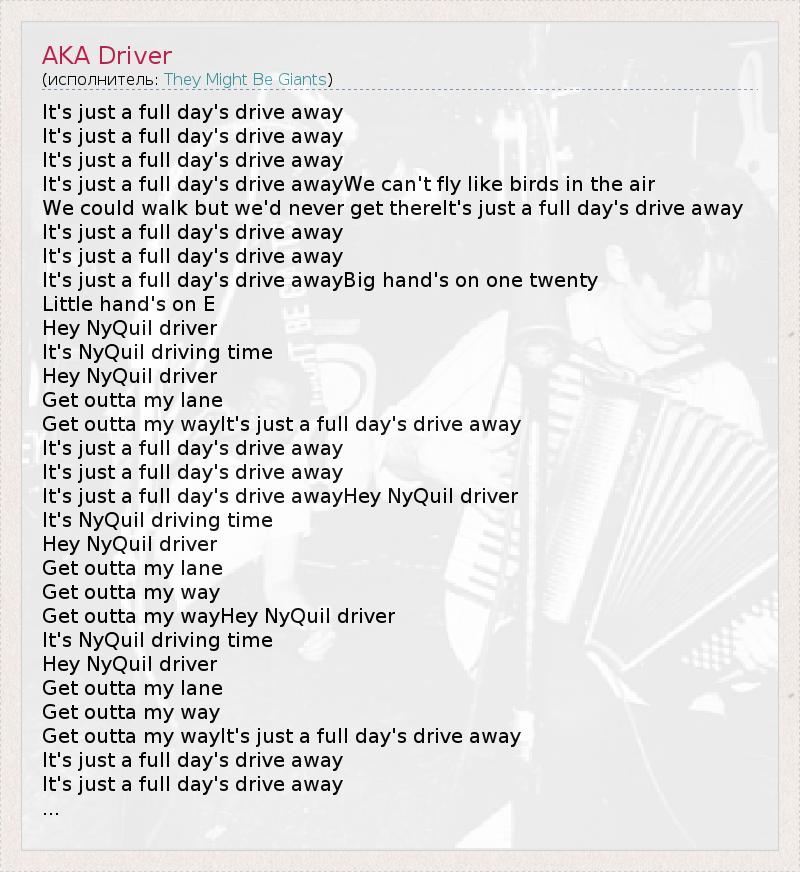 It's just a full day's drive awayHey NyQuil driver