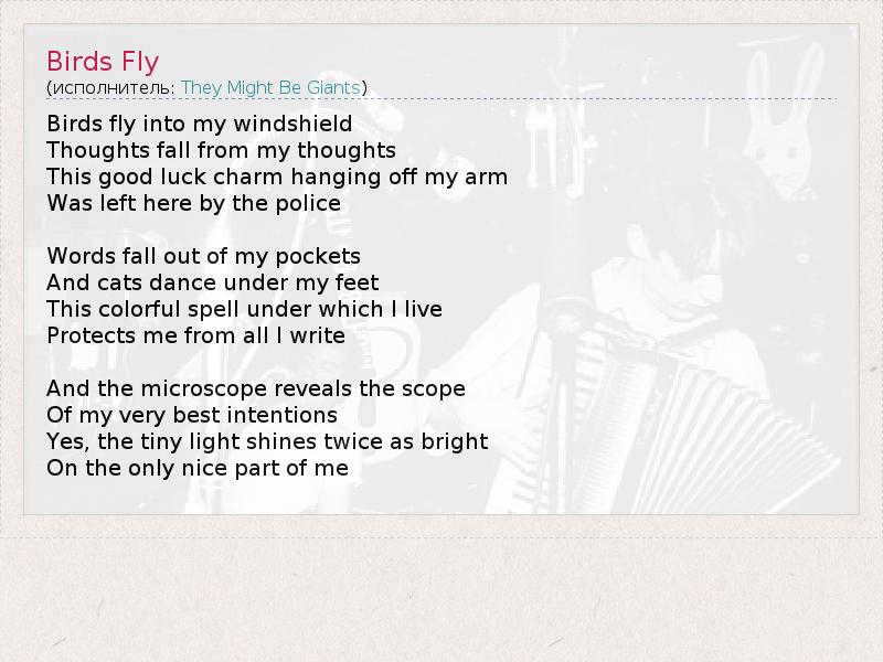 А как ты думаешь, о чем песня "Birds Fly" ?