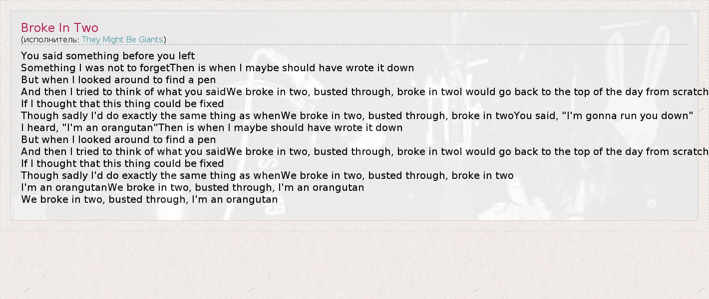 А как ты думаешь, о чем песня "Broke In Two" ?