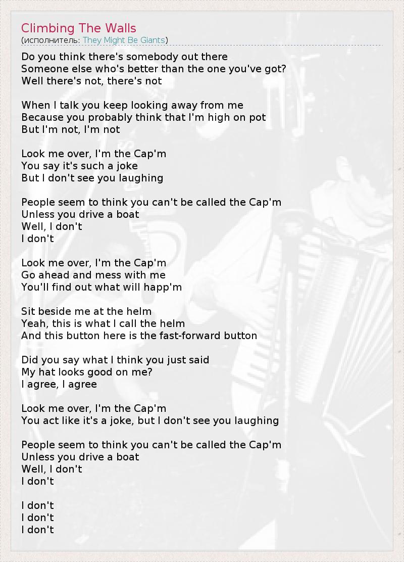 А как ты думаешь, о чем песня "Climbing The Walls" ?