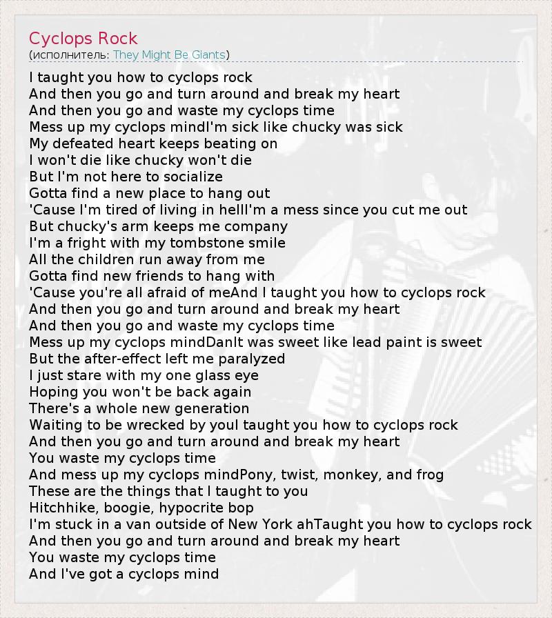 А как ты думаешь, о чем песня "Cyclops Rock" ?