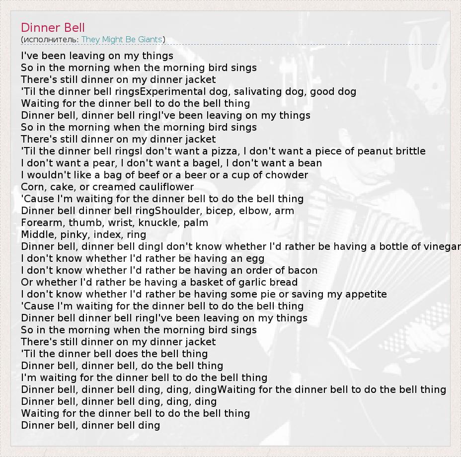 А как ты думаешь, о чем песня "Dinner Bell" ?