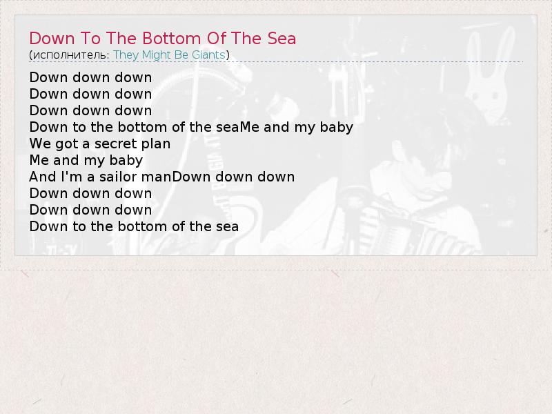 А как ты думаешь, о чем песня "Down To The Bottom Of The Sea" ?