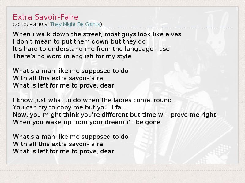 А как ты думаешь, о чем песня "Extra Savoir-Faire" ?