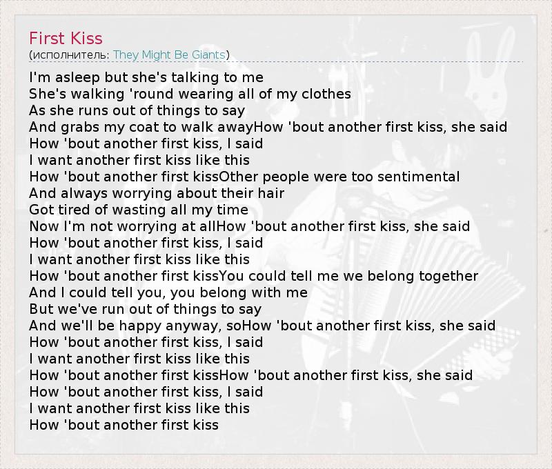 Now I'm not worrying at allHow 'bout another first kiss, she said