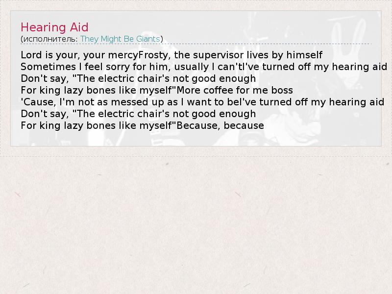 А как ты думаешь, о чем песня "Hearing Aid" ?