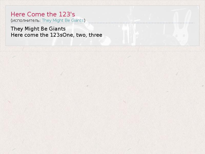 А как ты думаешь, о чем песня "Here Come the 123's" ?