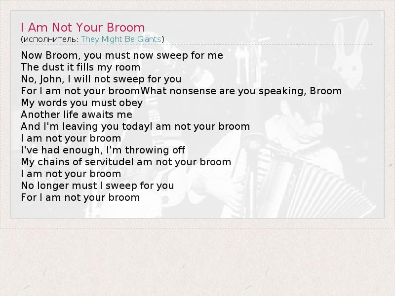 А как ты думаешь, о чем песня "I Am Not Your Broom" ?
