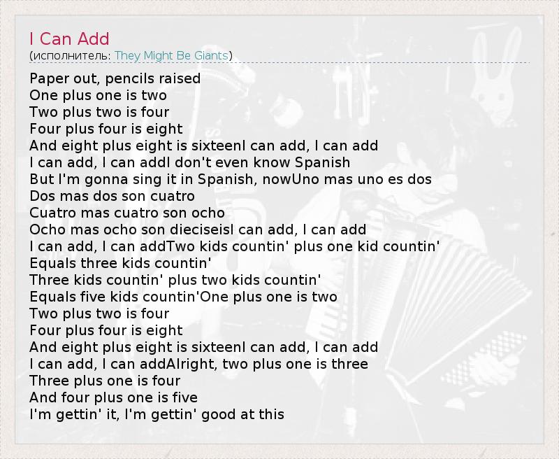 But I'm gonna sing it in Spanish, nowUno mas uno es dos