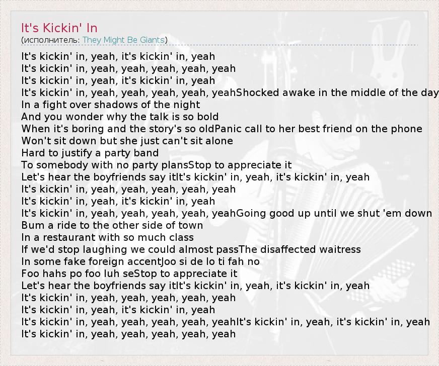 А как ты думаешь, о чем песня "It's Kickin' In" ?