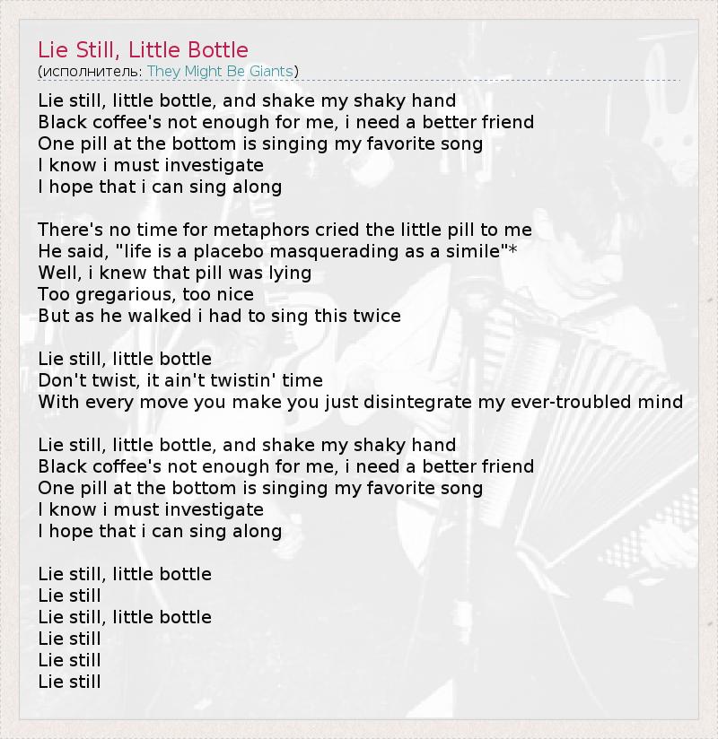А как ты думаешь, о чем песня "Lie Still, Little Bottle" ?
