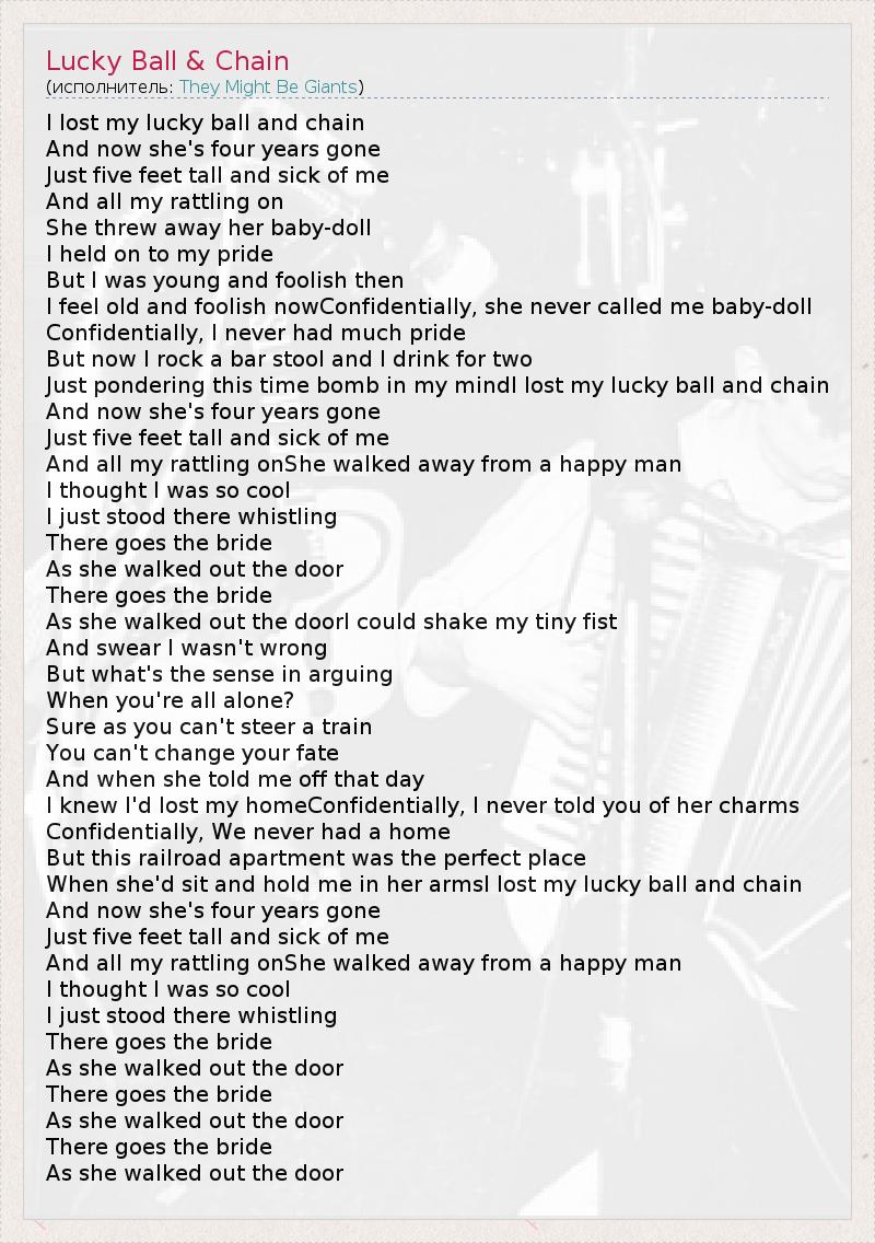 А как ты думаешь, о чем песня "Lucky Ball & Chain" ?