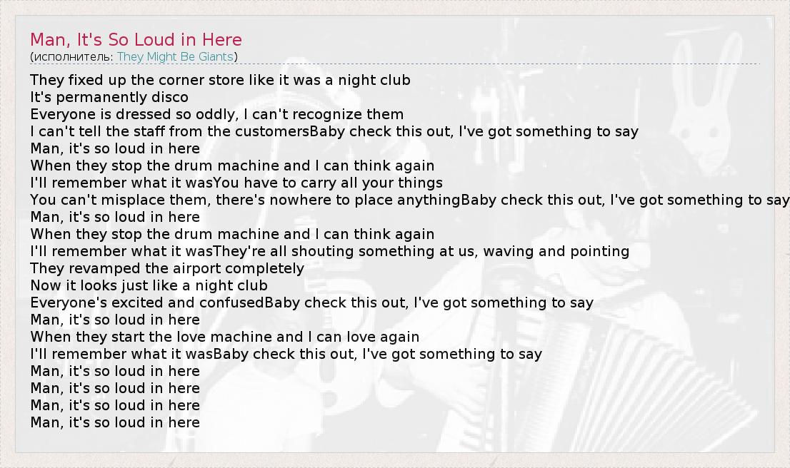А как ты думаешь, о чем песня "Man, It's So Loud in Here" ?