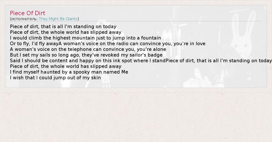 А как ты думаешь, о чем песня "Piece Of Dirt" ?