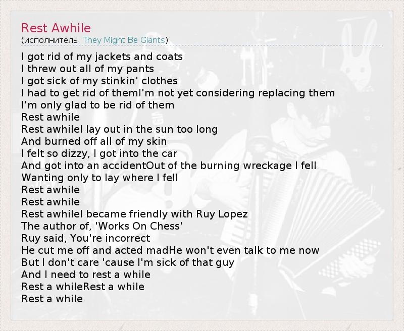 А как ты думаешь, о чем песня "Rest Awhile" ?