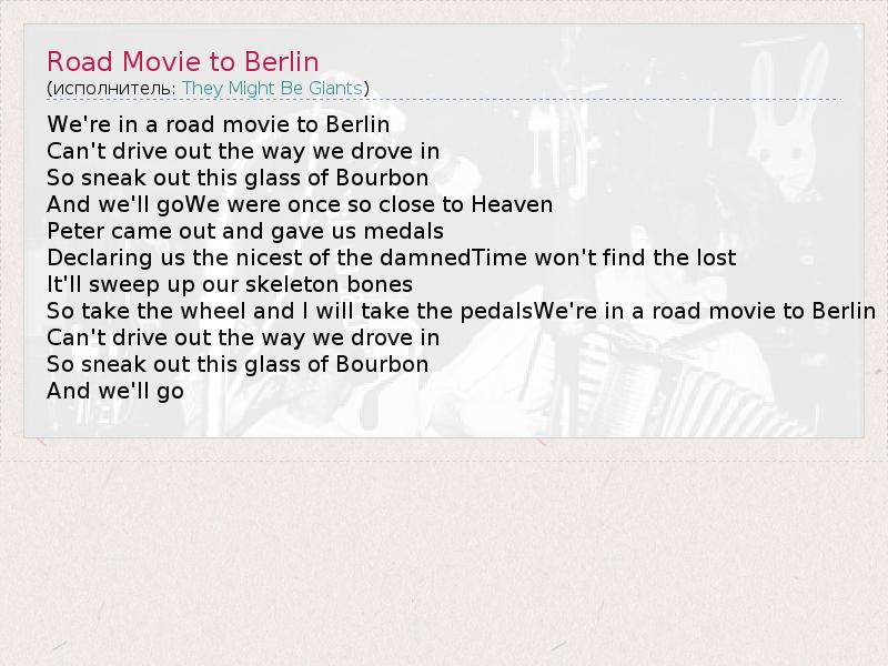 А как ты думаешь, о чем песня "Road Movie to Berlin" ?