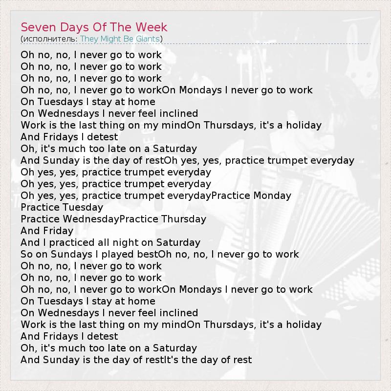 А как ты думаешь, о чем песня "Seven Days Of The Week" ?