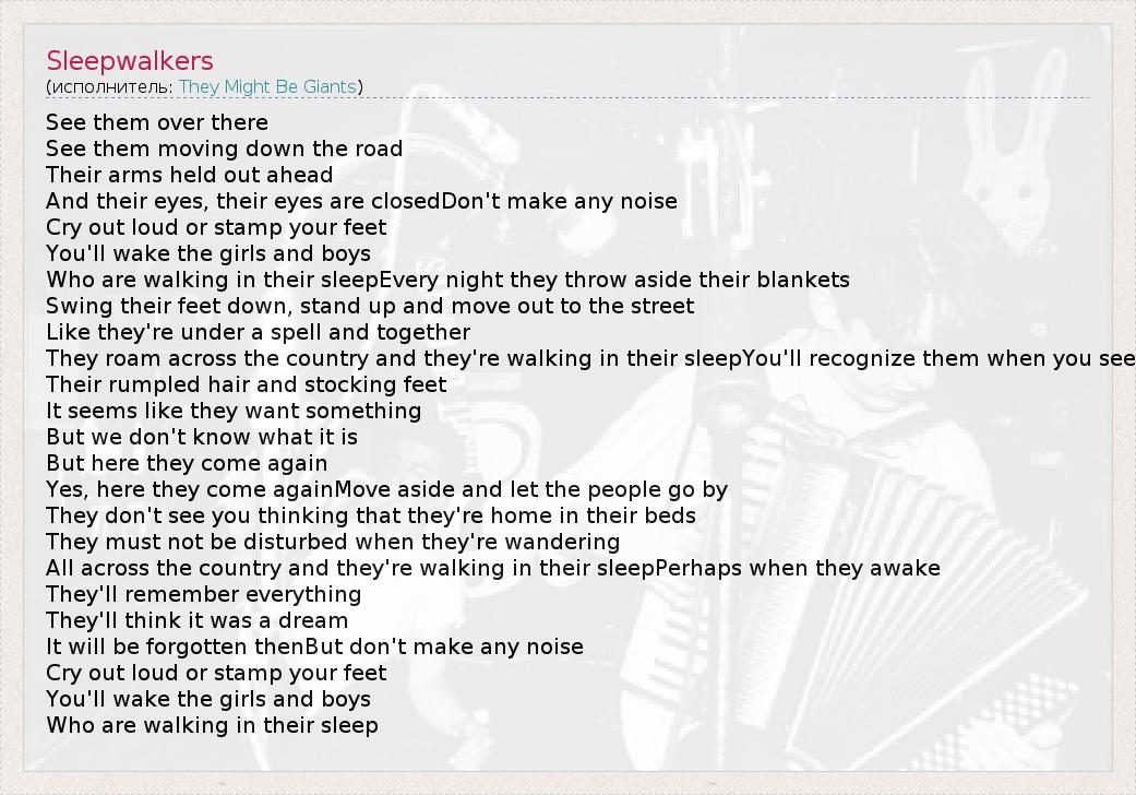 А как ты думаешь, о чем песня "Sleepwalkers" ?