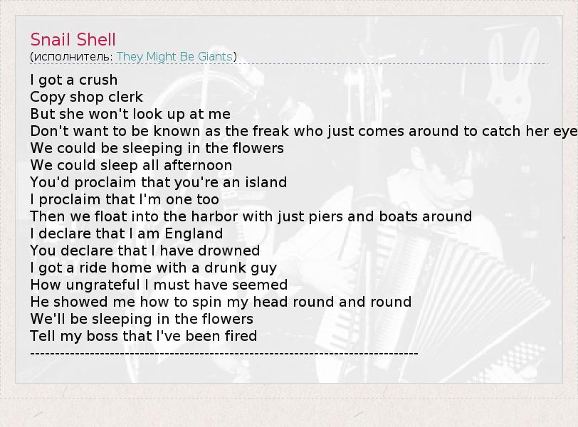 А как ты думаешь, о чем песня "Snail Shell" ?
