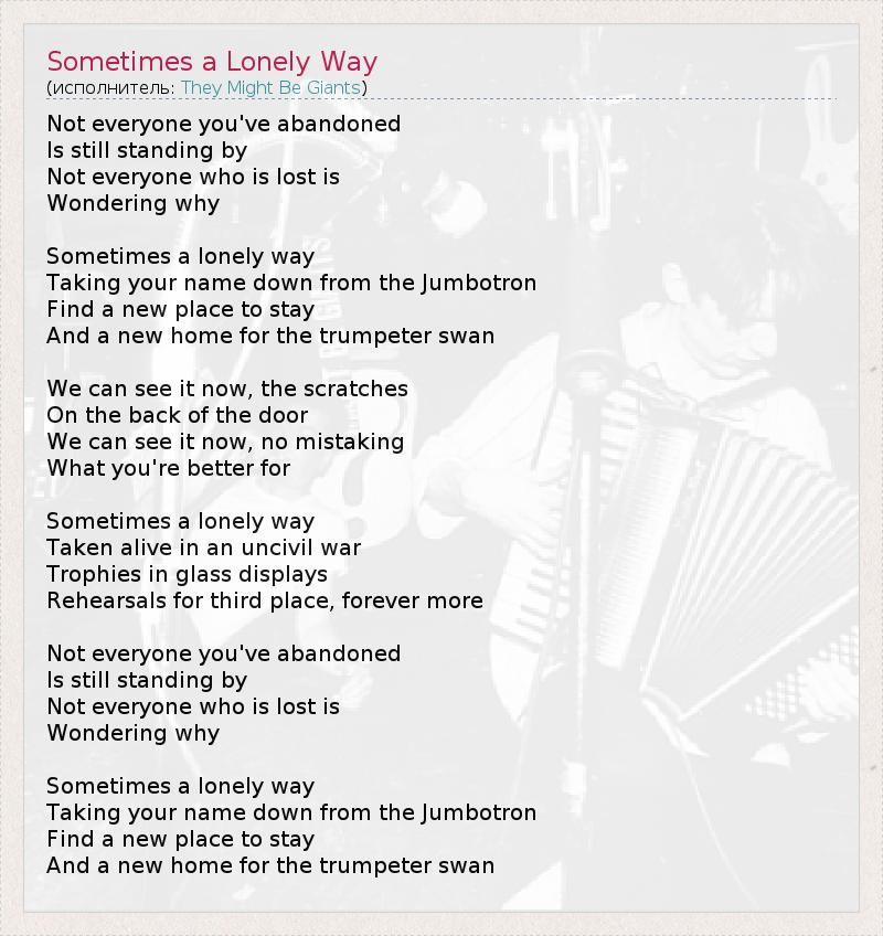 А как ты думаешь, о чем песня "Sometimes a Lonely Way" ?