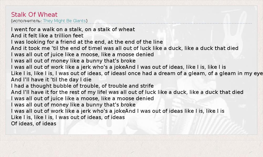 А как ты думаешь, о чем песня "Stalk Of Wheat" ?
