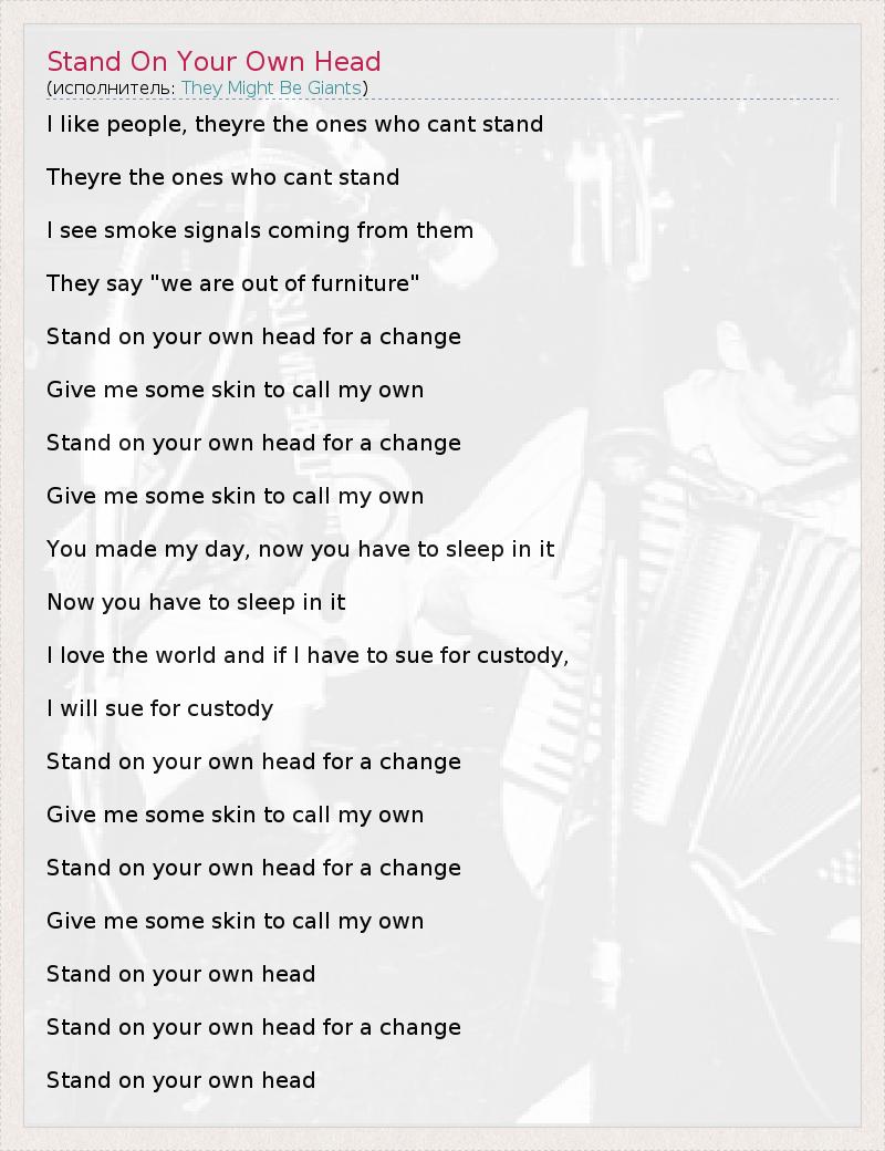 А как ты думаешь, о чем песня "Stand On Your Own Head" ?