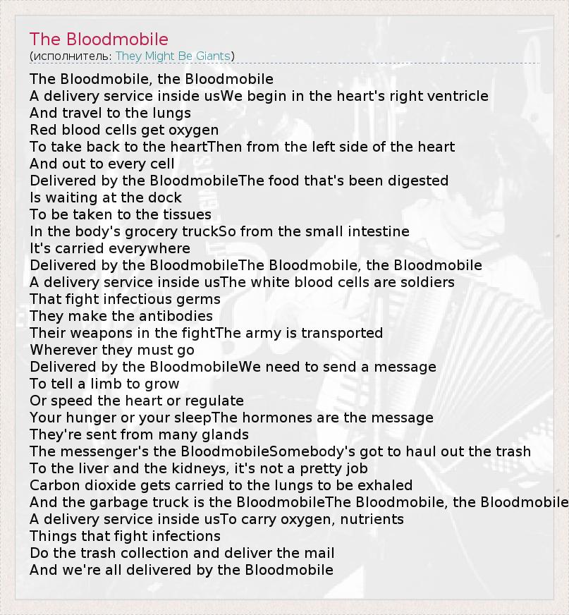 А как ты думаешь, о чем песня "The Bloodmobile" ?