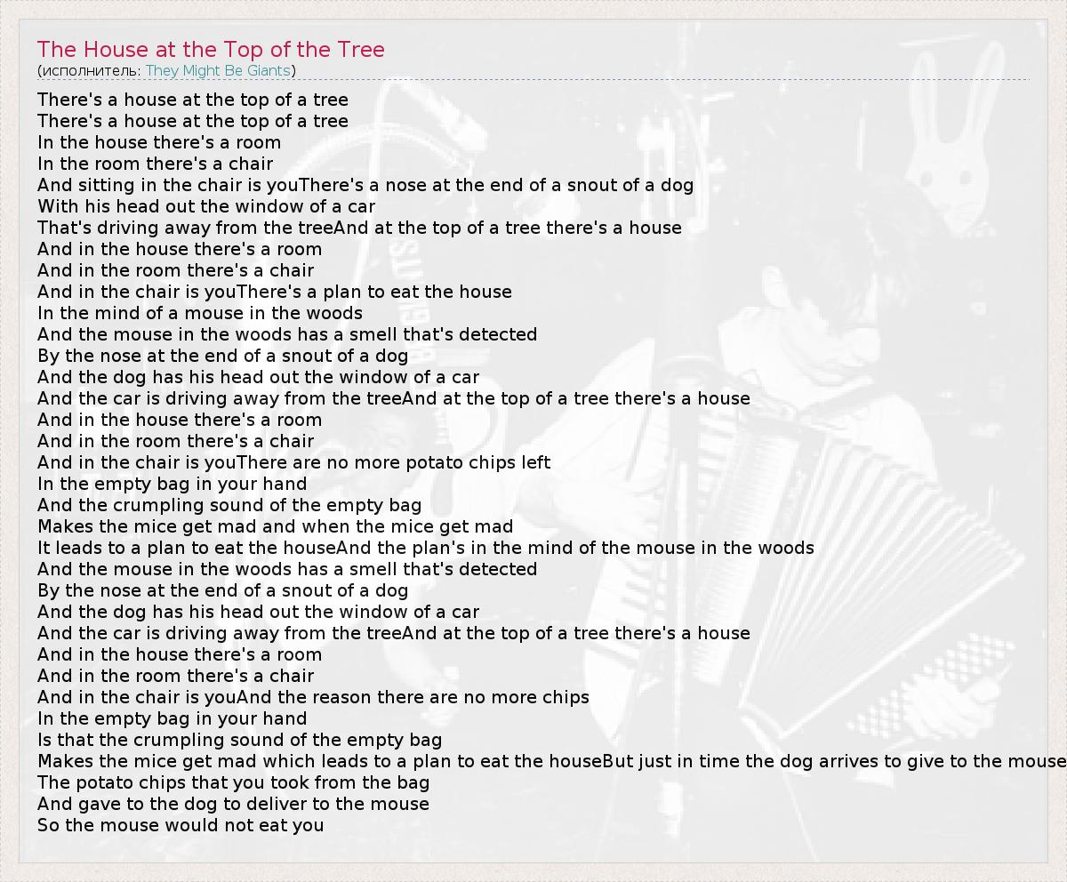 ГлавнаяИсполнителиThey Might Be GiantsThe House at the Top of the Tree