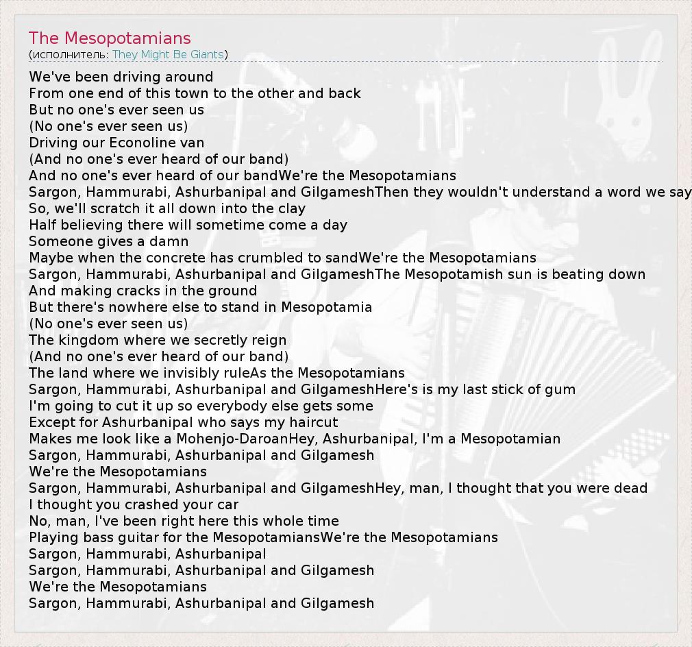 А как ты думаешь, о чем песня "The Mesopotamians" ?