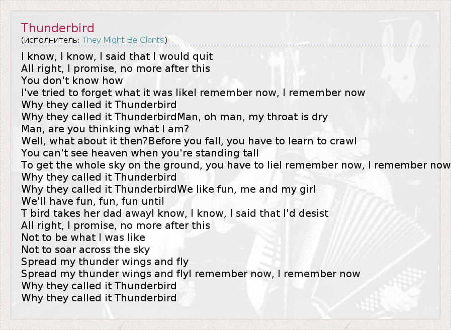 А как ты думаешь, о чем песня "Thunderbird" ?