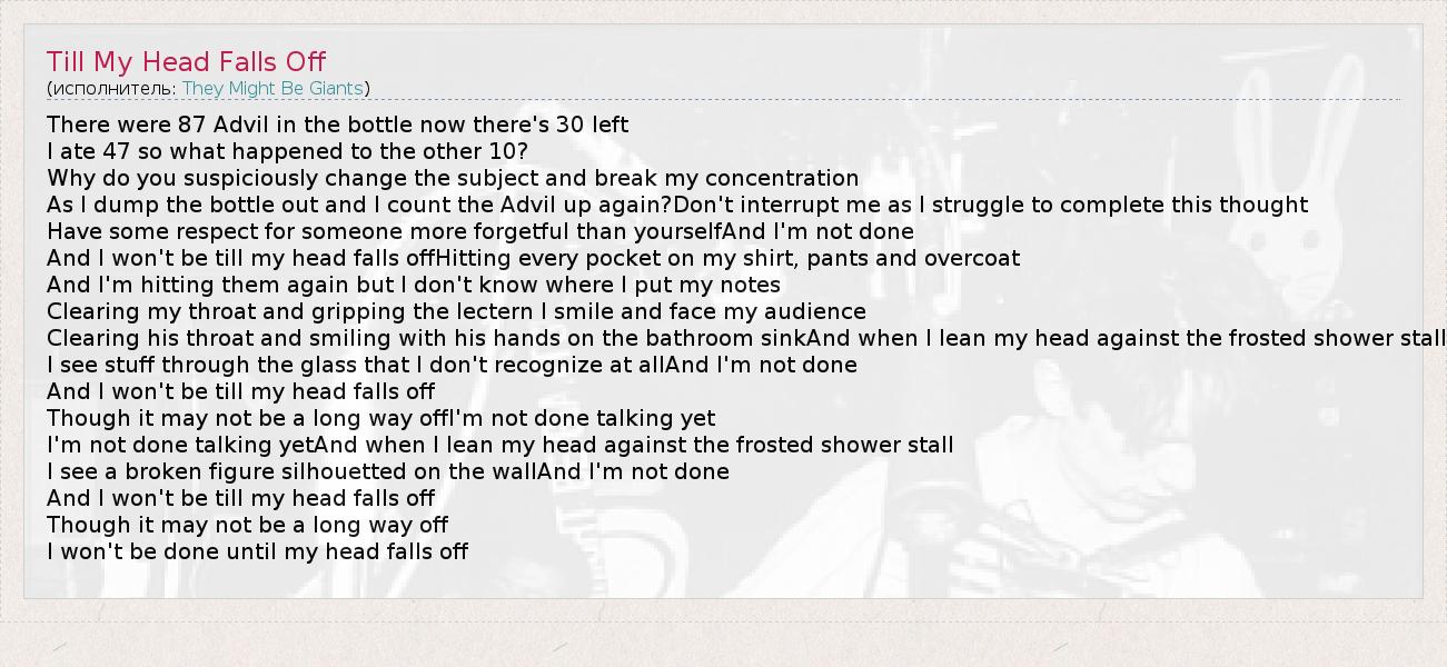 А как ты думаешь, о чем песня "Till My Head Falls Off" ?