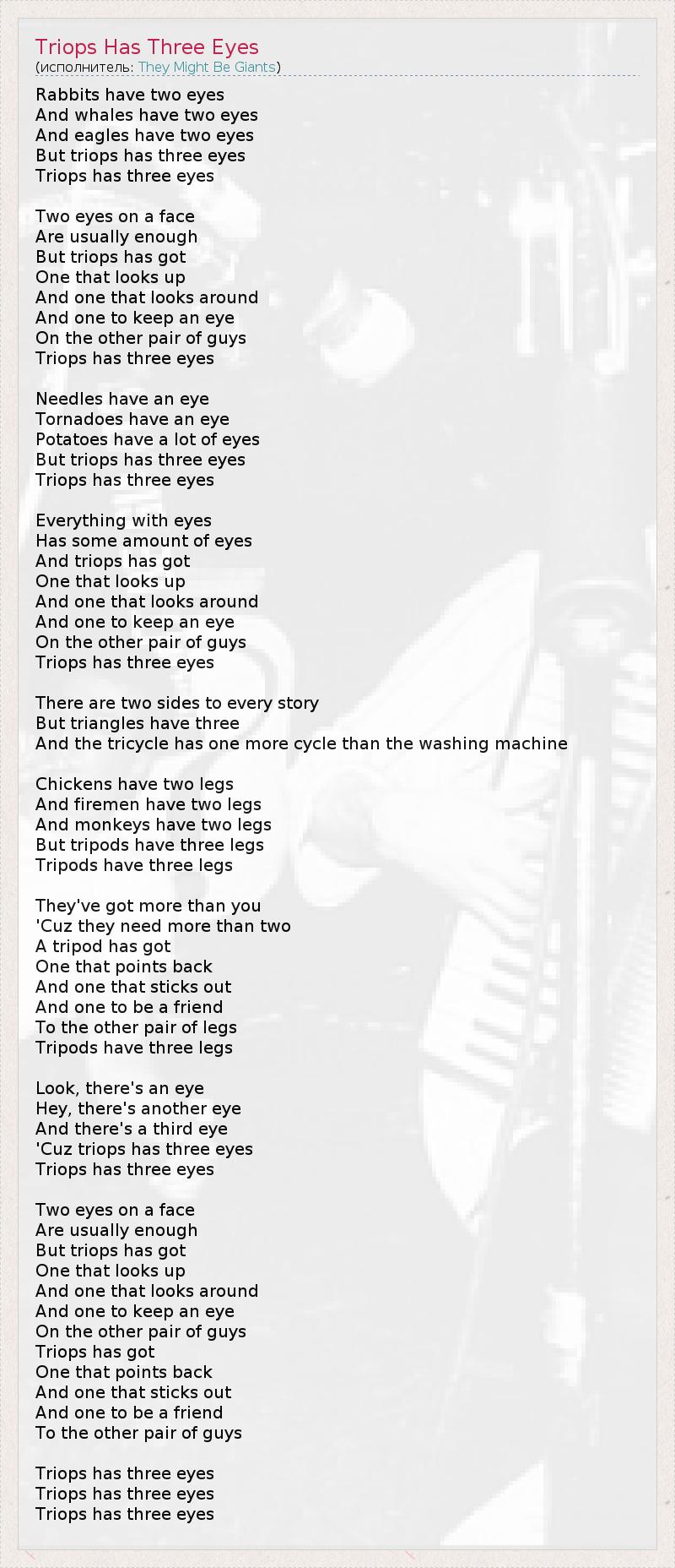 А как ты думаешь, о чем песня "Triops Has Three Eyes" ?