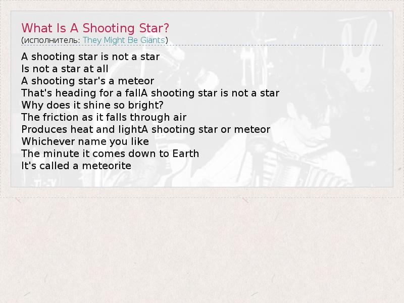 А как ты думаешь, о чем песня "What Is A Shooting Star?" ?