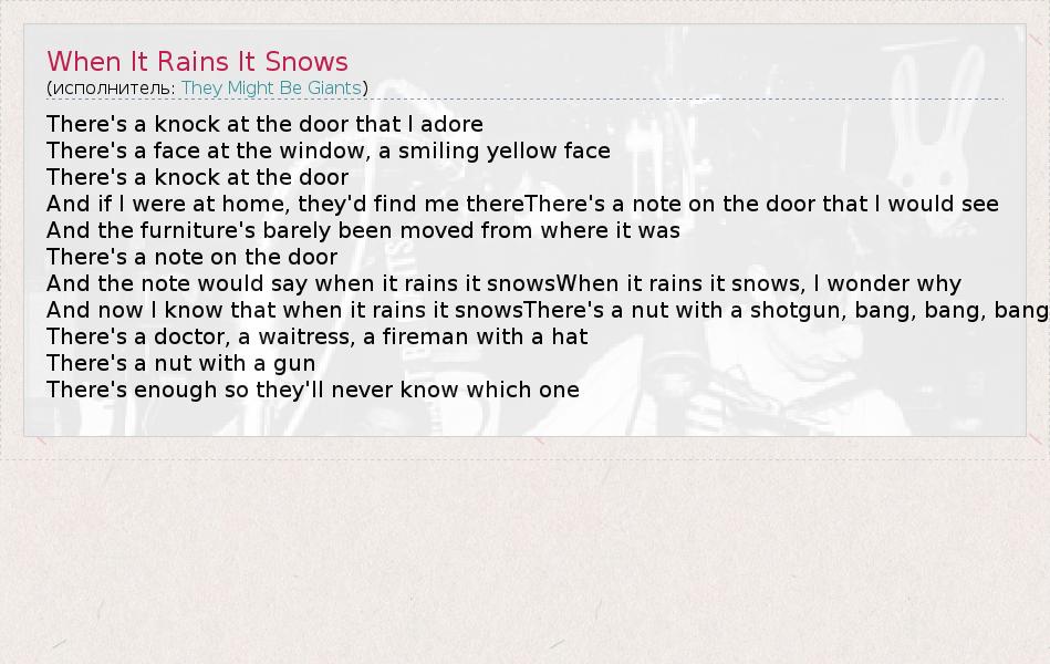 А как ты думаешь, о чем песня "When It Rains It Snows" ?