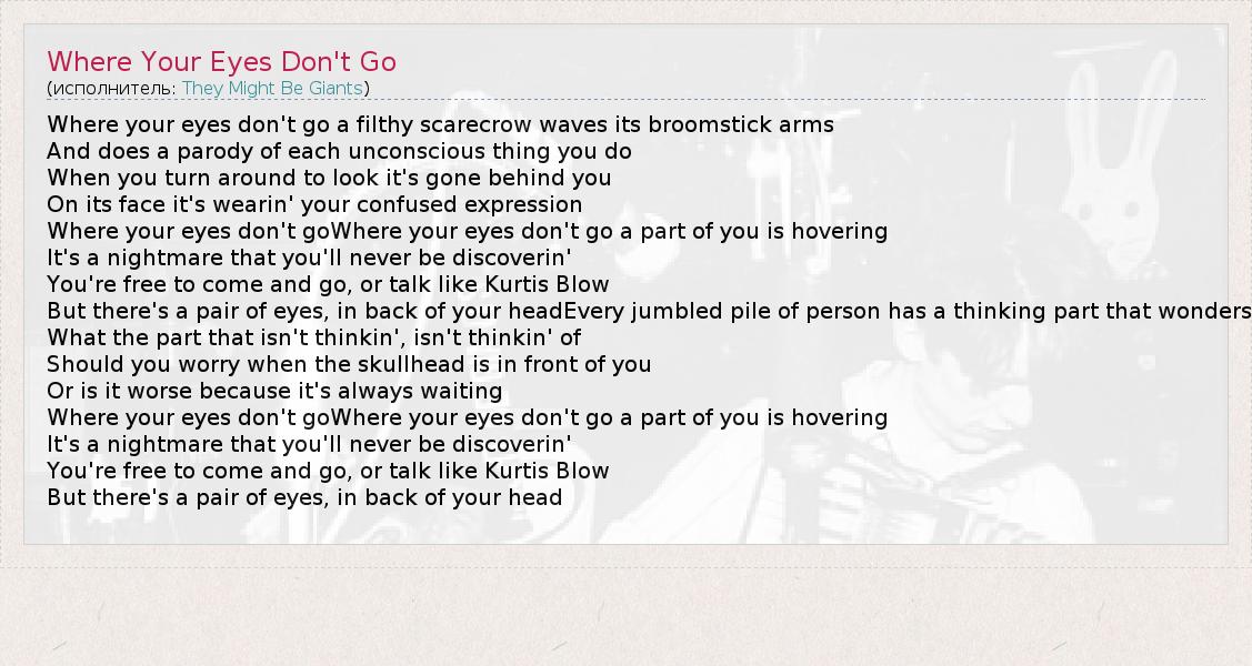 А как ты думаешь, о чем песня "Where Your Eyes Don't Go" ?