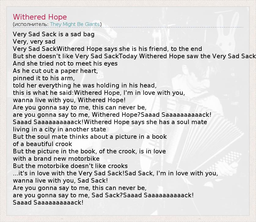 А как ты думаешь, о чем песня "Withered Hope" ?