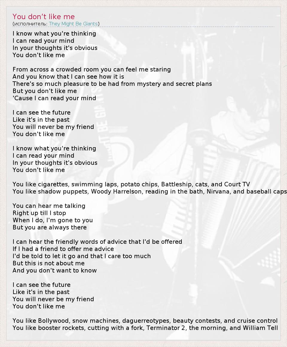 А как ты думаешь, о чем песня "You don’t like me" ?