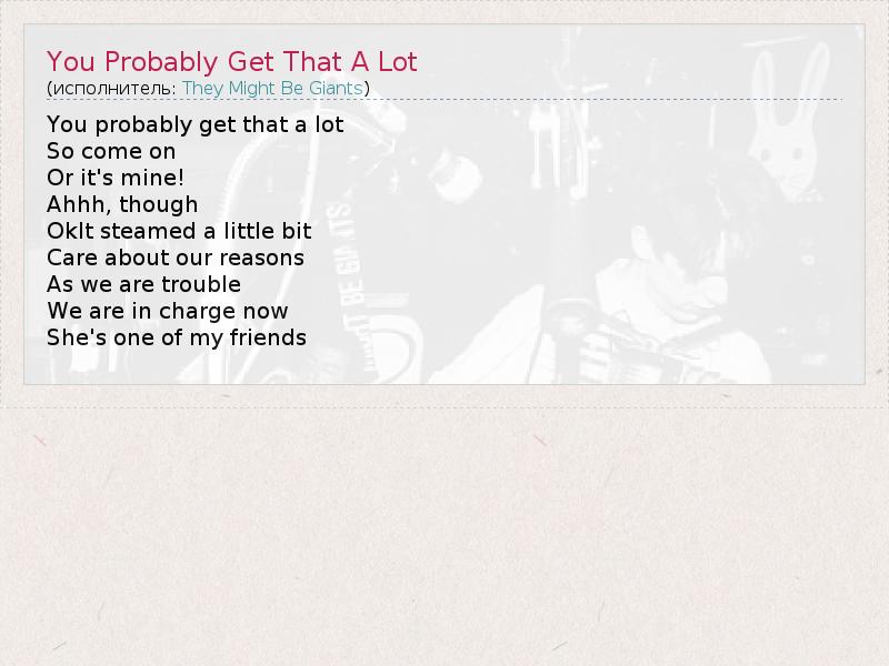 А как ты думаешь, о чем песня "You Probably Get That A Lot" ?