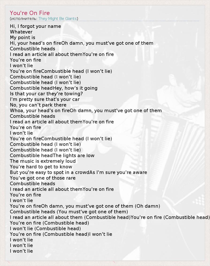 А как ты думаешь, о чем песня "You're On Fire" ?