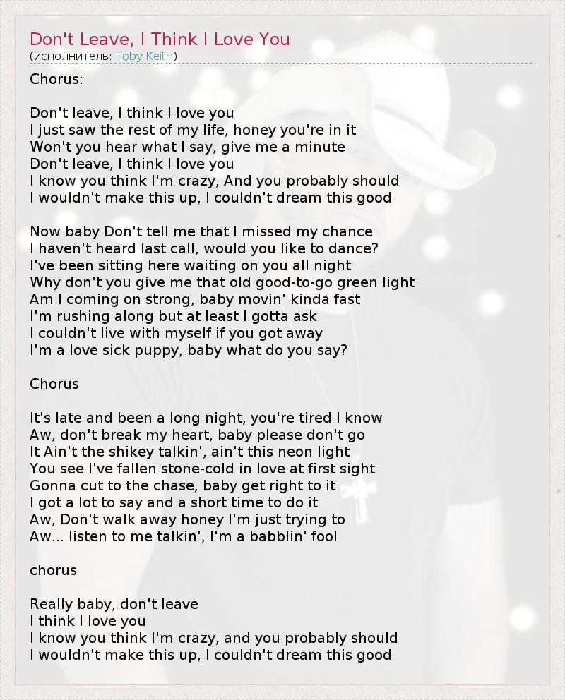 ГлавнаяИсполнителиToby KeithDon't Leave, I Think I Love You