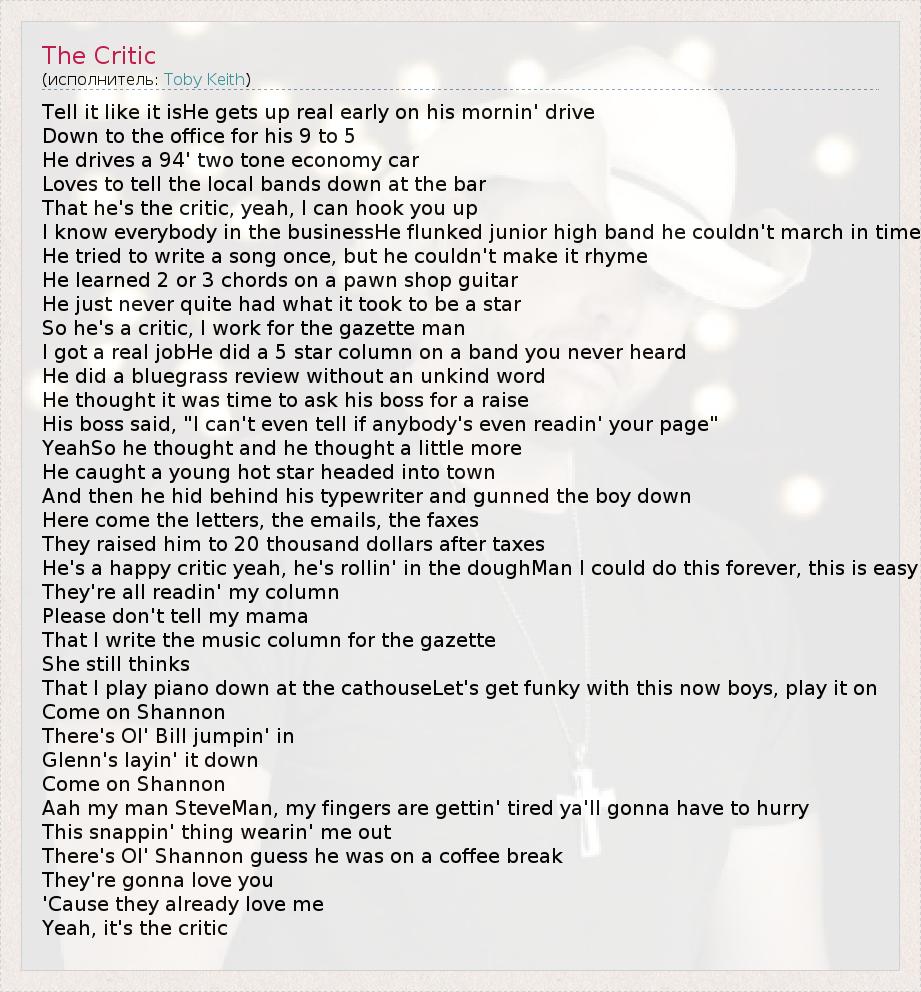 А как ты думаешь, о чем песня "The Critic" ?