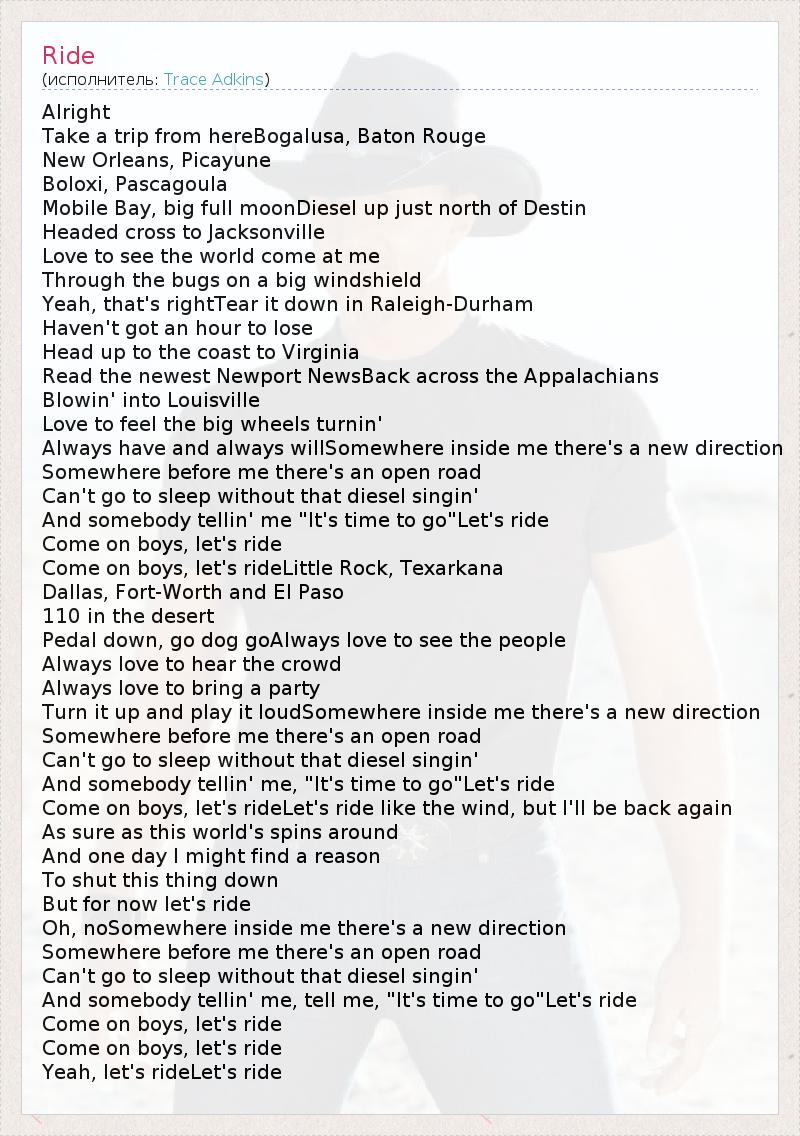 And somebody tellin' me, tell me, "It's time to go"Let's ride