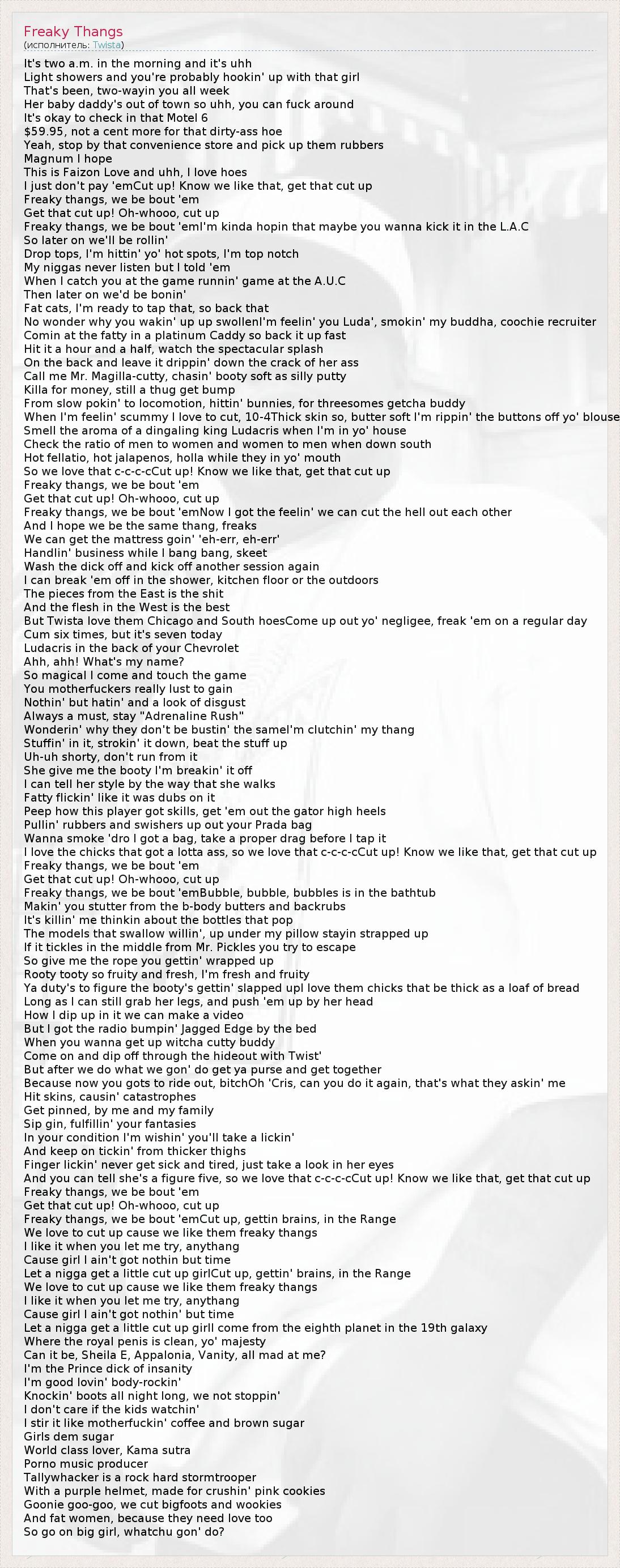 А как ты думаешь, о чем песня "Freaky Thangs" ?