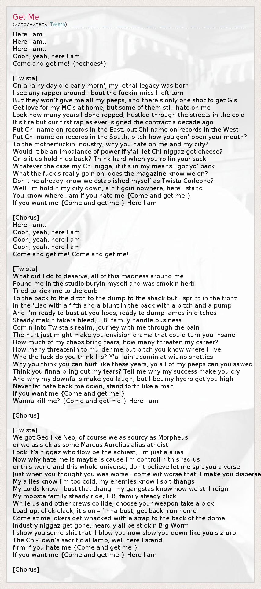 Это интересно:Настоящее имя: Carl Terrell MitchelРодился: 27 ноября 1973 года, г. ЧикагоAKA: Tung TwistaTwista известен миру как один из самых быстрых рэпперов по скорости читки. Он вырос в Кей-тауне (западный район Чикаго), где он начал читать рэп в 12 лет. Он состоял в древнейшей чикагской банде Vice Lords, а также поддерживал хорошие отношения с другой бандой – Folk Nation. До того как Twista начал заниматься музыкой профессионально,... продолжение