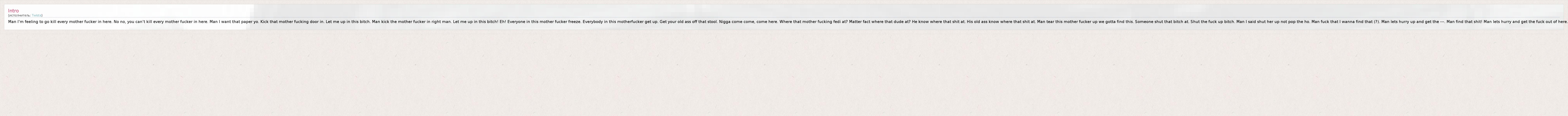 Man I'm feeling to go kill every mother fucker in here. No no, you can't kill every mother fucker in here. Man I want that paper yo. Kick that mother fucking door in. Let me up in this bitch. Man kick the mother fucker in right man. Let me up in this bitch! Eh! Everyone in this mother fucker freeze. Everybody in this motherfucker get up. Get your old ass off that stool. Nigga come come, come here. Where that mother fucking fedi at? Matter fact where that dude at? He know where that shit at. His old ass know where that shit at. Man tear this mother fucker up we gotta find this. Someone shut that bitch at. Shut the fuck up bitch. Man I said shut her up not pop the ho. Man fuck that I wanna find that (?). Man lets hurry up and get the ---. Man find that shit! Man lets hurry and get the fuck out of here.