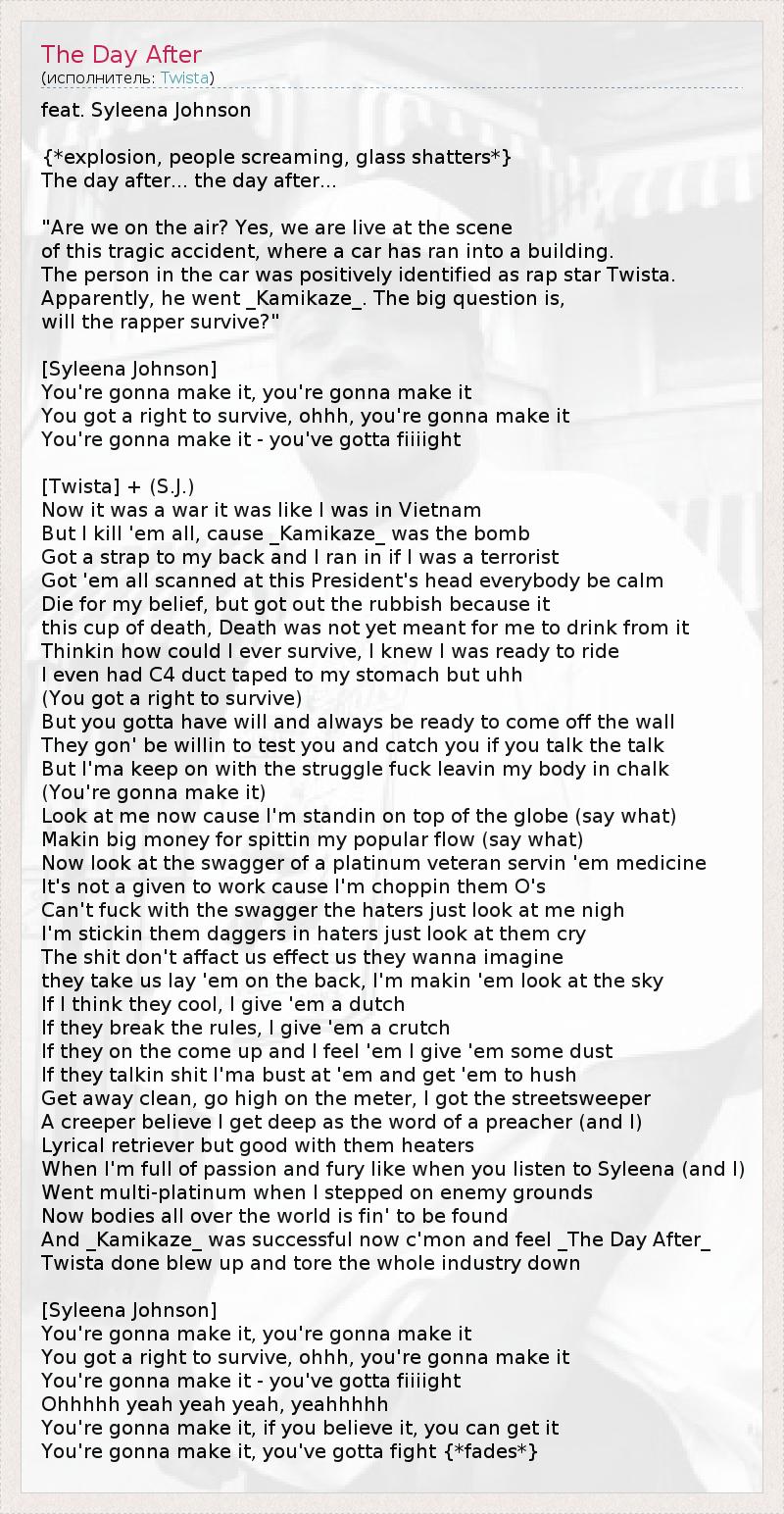 And _Kamikaze_ was successful now c'mon and feel _The Day After_