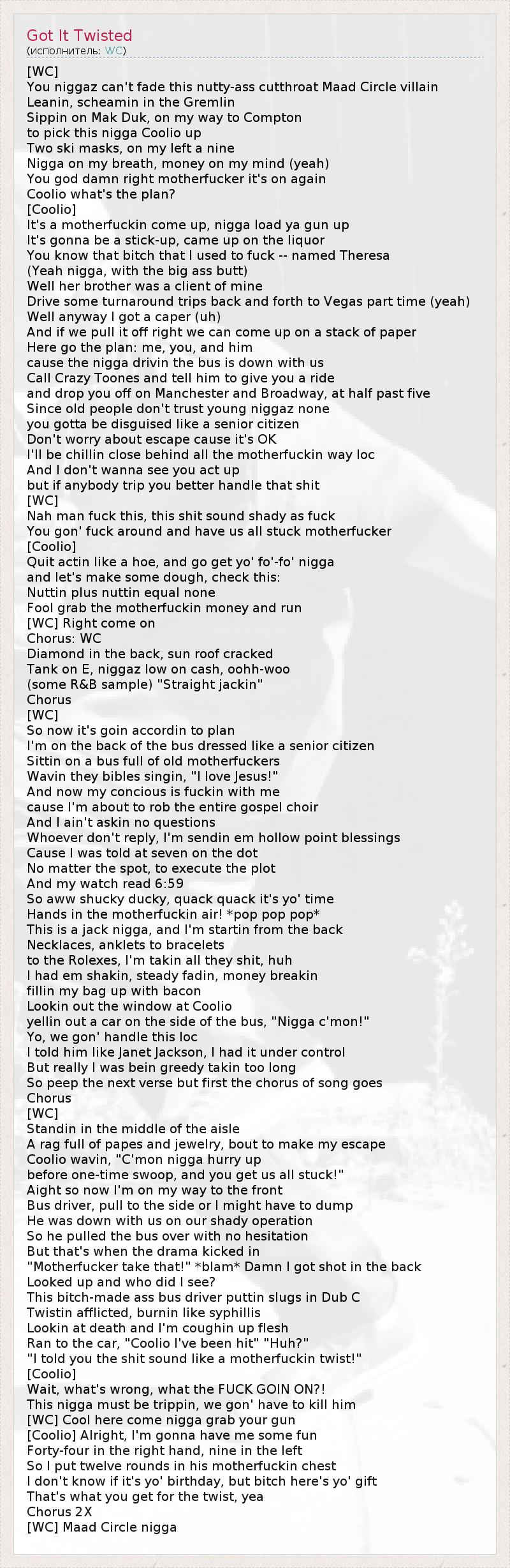 "I told you the shit sound like a motherfuckin twist!"