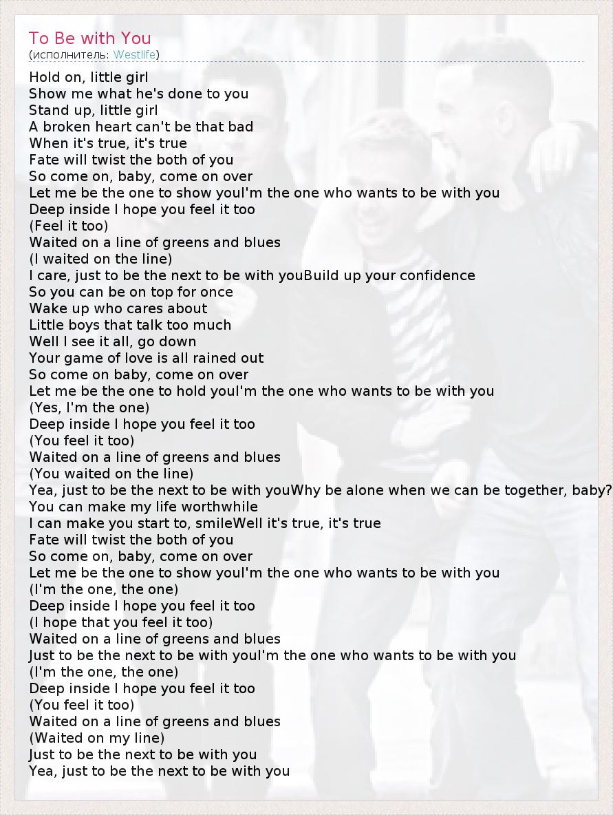 Это интересно:Westlife — поп-группа из Ирландии, которая в промежутке между 1999 и 2006 годами четырнадцать раз выходила на первое место в британских чартах. Это третье достижение в истории, после Элвиса Пресли и The Beatles. Несмотря на столь оглушительный успех, группа относительно малоизвестна за пределами стран Британского Содружества, особенно в США и России.Группа была создана в Дублине менеджерами... продолжение