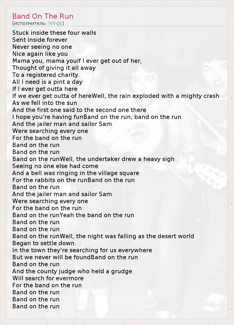 А как ты думаешь, о чем песня "Band On The Run" ?